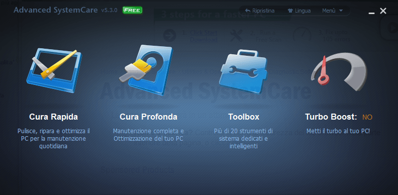 Advanced SystemCare è un utilissimo software che permette di eseguire una serie di operazioni che vi rimetteranno a nuovo il pc.