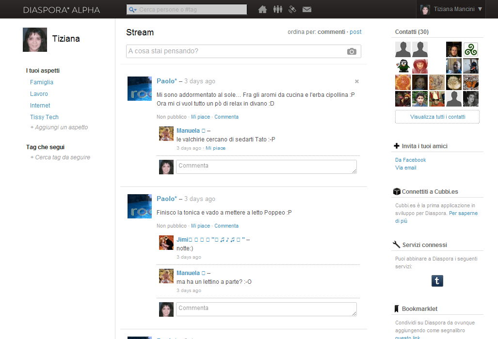 Ha sbagliato i tempi però, è rimasta in alpha troppo a lungo, e così è arrivato Google +, con le sue cerchie che ricalcano gli ‘aspetti’ di Diaspora e un look molto simile.