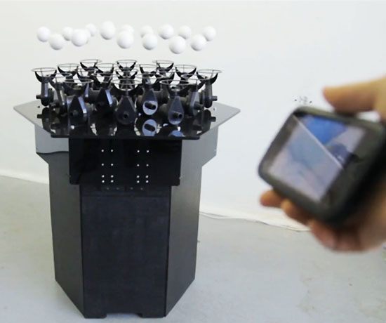 Non ci sono strumenti né musicisti, la musica è creata da 19 palline da ping pong che fluttuano.