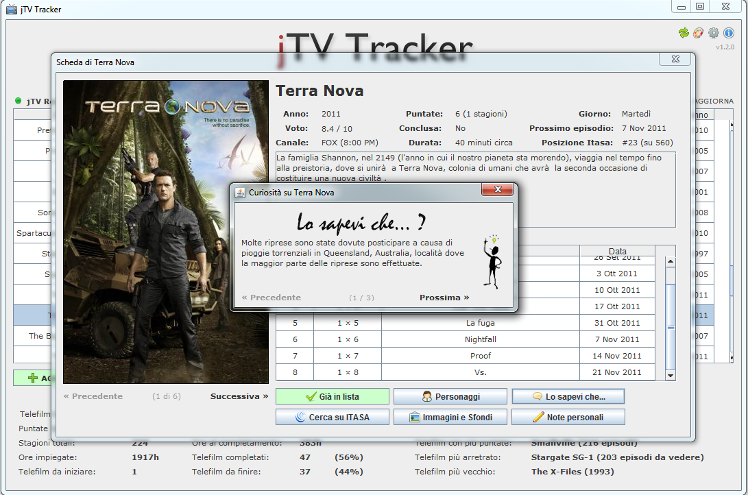 Per chi come me si trova sempre sommerso da file, sottotitoli e calendari di itasa, jTV Tracker può essere un valido aiuto. Si tratta infatti di un nuovo software gratuito e multipiattaforma che consente di gestire le proprie serie TV preferite.