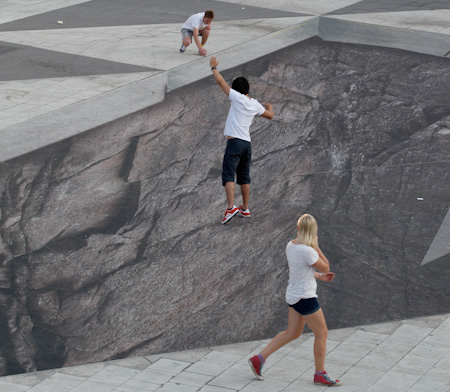 I pedoni che passeggiavano per Stoccolma dal 7 al 12 giugno scorsi rischiavano di ritrovarsi sospesi nel vuoto su una pericolante piattaforma triangolare o almeno questa era l’impressione 🙂