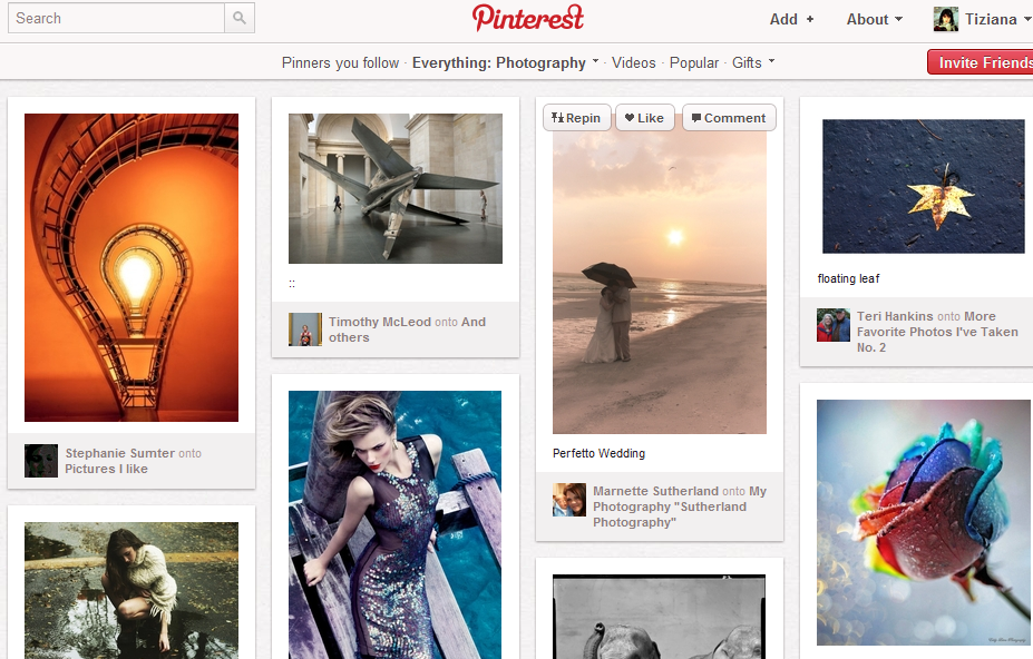 Ora vi chiederete però che differenza ci sia tra Pinterest e servizi che mettono a disposizione photoalbum come flickr o picasa. La differenza è che in Pinterest ogni immagine non è condivisa in quanto tale ma è in realtà la copertina di un contenuto Web con link diretto al sito di origine.