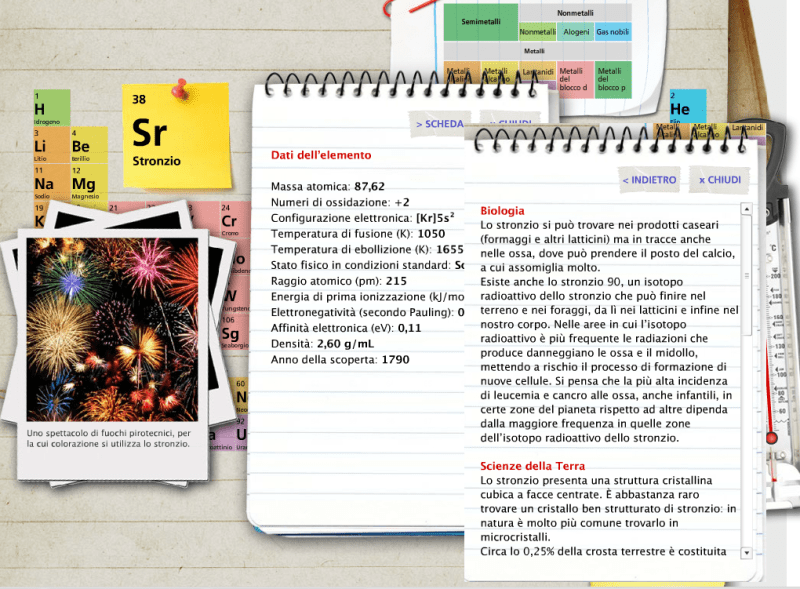 Cliccando su ciascun elemento della tavola si aprirà un foglietto stile block notes in cui troverete i dati relativi a quell’elemento.