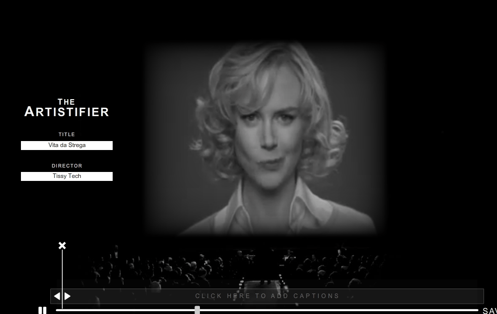 The Artistifier è un divertente servizio che vi permetterà di trasformare un qualsiasi video di YouTube in un film in bianco e nero con tanto di musica di sottofondo adeguata. Per iniziare vi basterà incollare nell’apposita barra il link del video che volete modificare.Poi potrete anche aggiungere i classici ‘cartelli’ con scritte create da voi e condividere poi il tutto su social network o direttamente tramite link